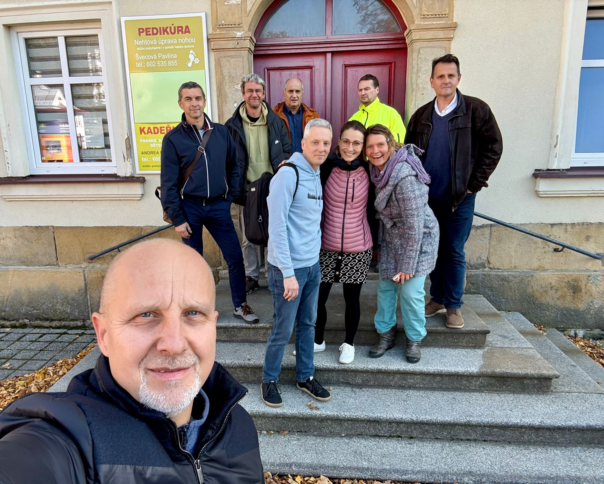 Přitomni na obhlídce: nejpracovitější senátor ing. Linhart, nejprogresivnější starosta pan Kolář, nejvytíženější projektant ing. Cobl, nejzkušenější vedoucí stavebního odboru ing. Simandl, největší klíčník pan Oliva, nejvizionářštější Švecovi, nejcertifikovanější Marjánka a skoronejvyšší Radim.
